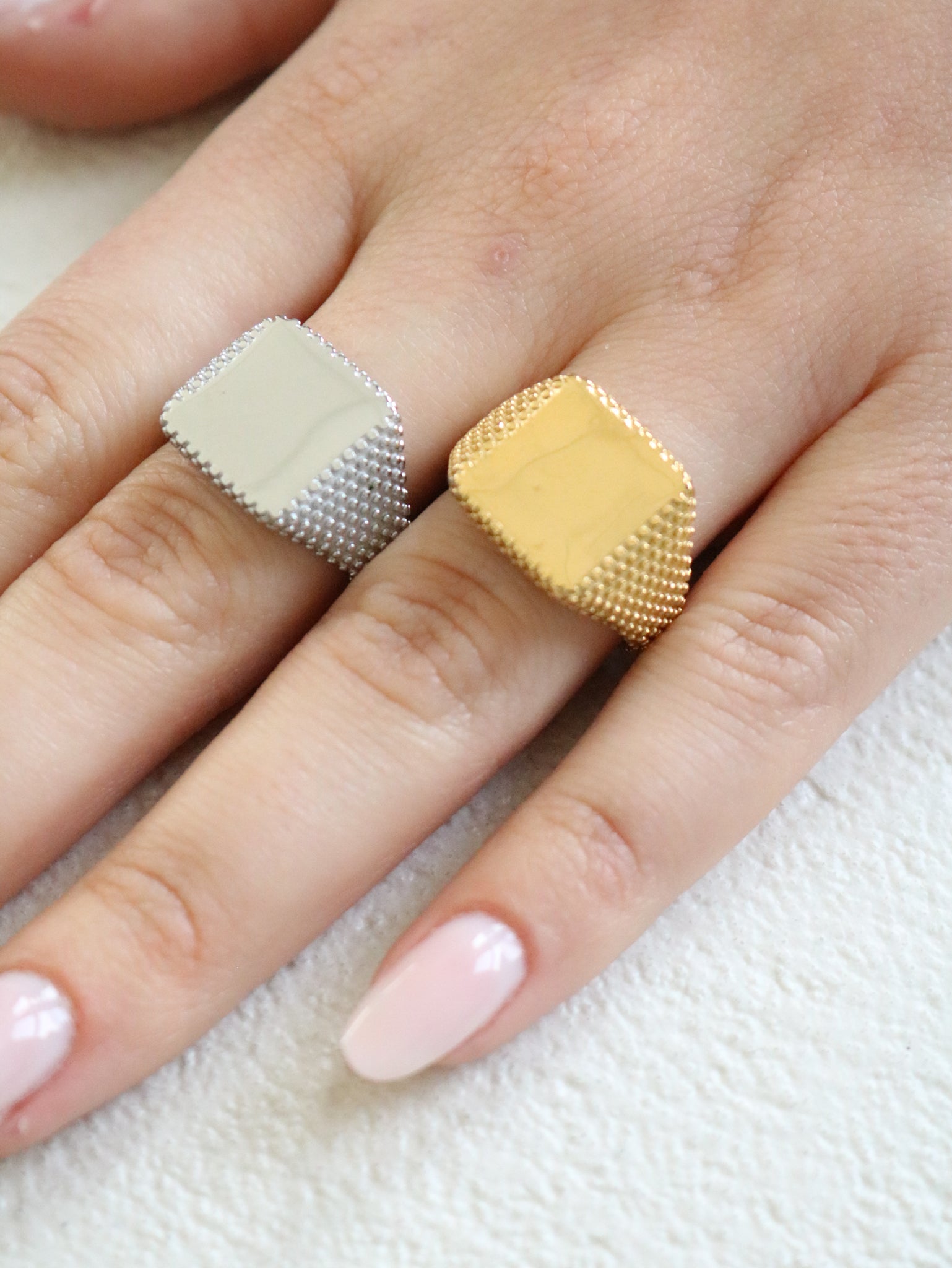 Disponibile in colorazione oro o argento.