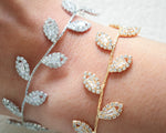 Bracciale placcato in oro o argento con foglioline strass.
