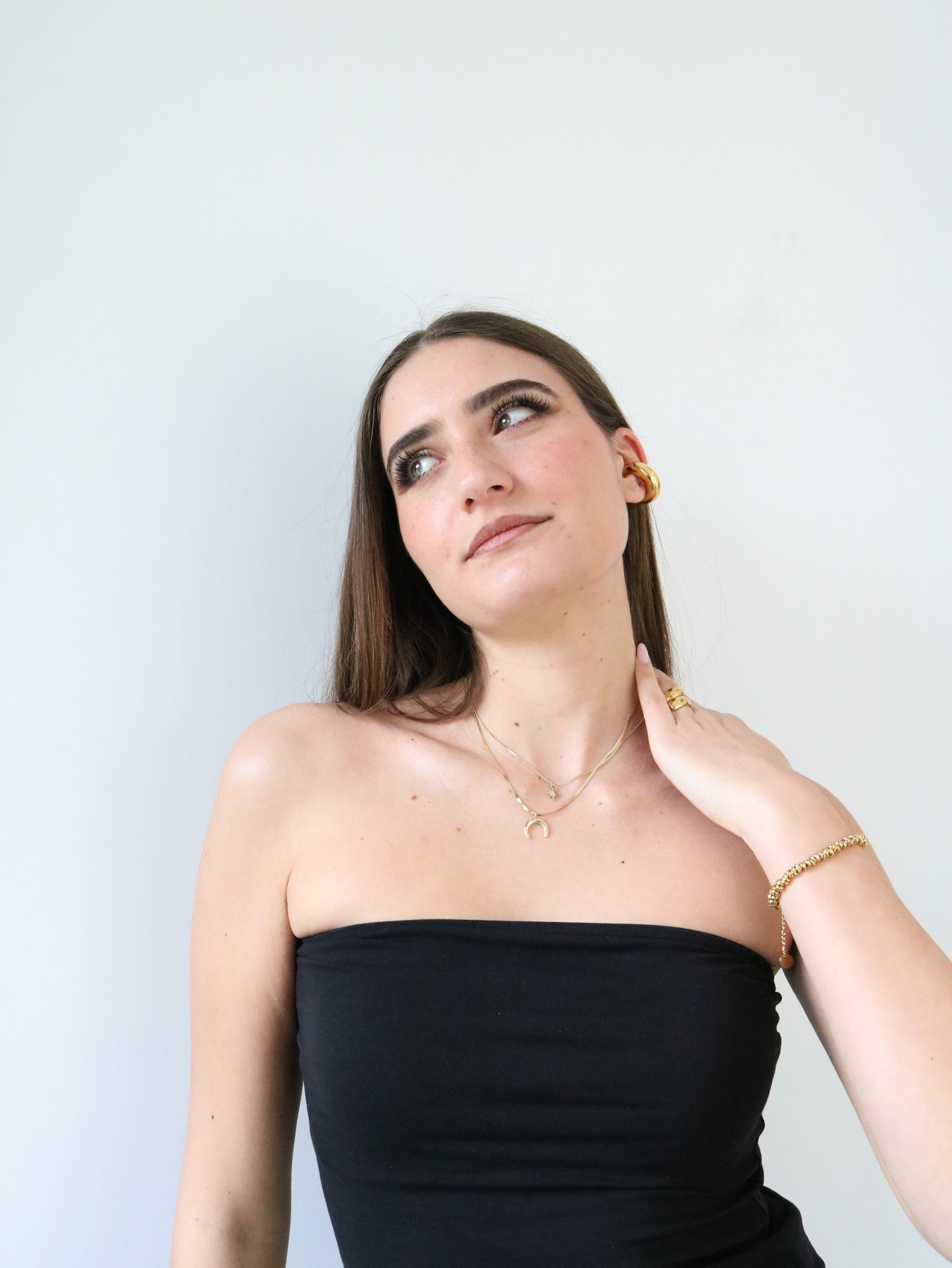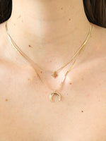 Collana con doppia catena, con ciondoli stella e luna, disponibile in colorazione oro o argento