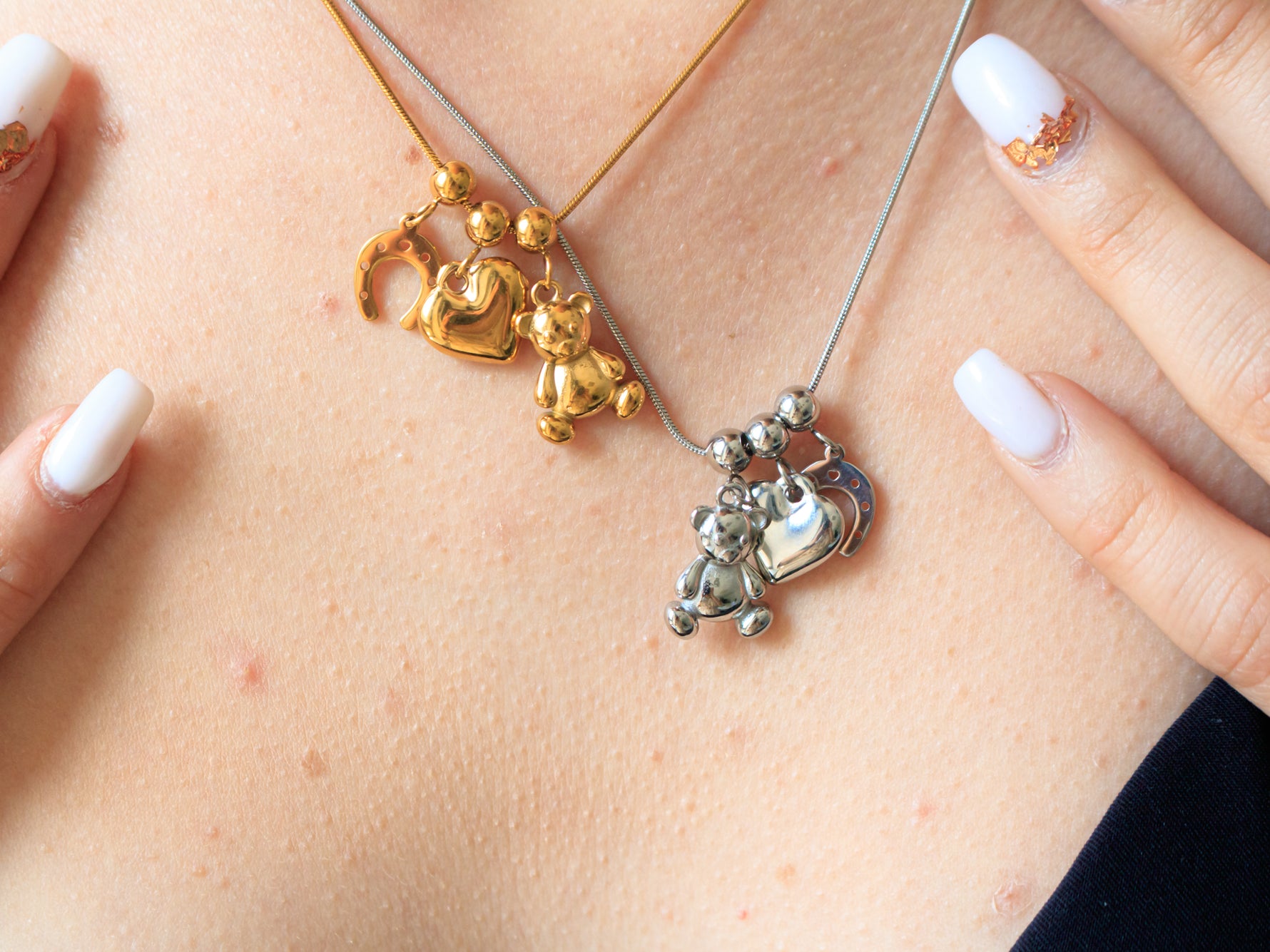 Collana con tre ciondoli pendenti, disponibile in colorazione oro o argento