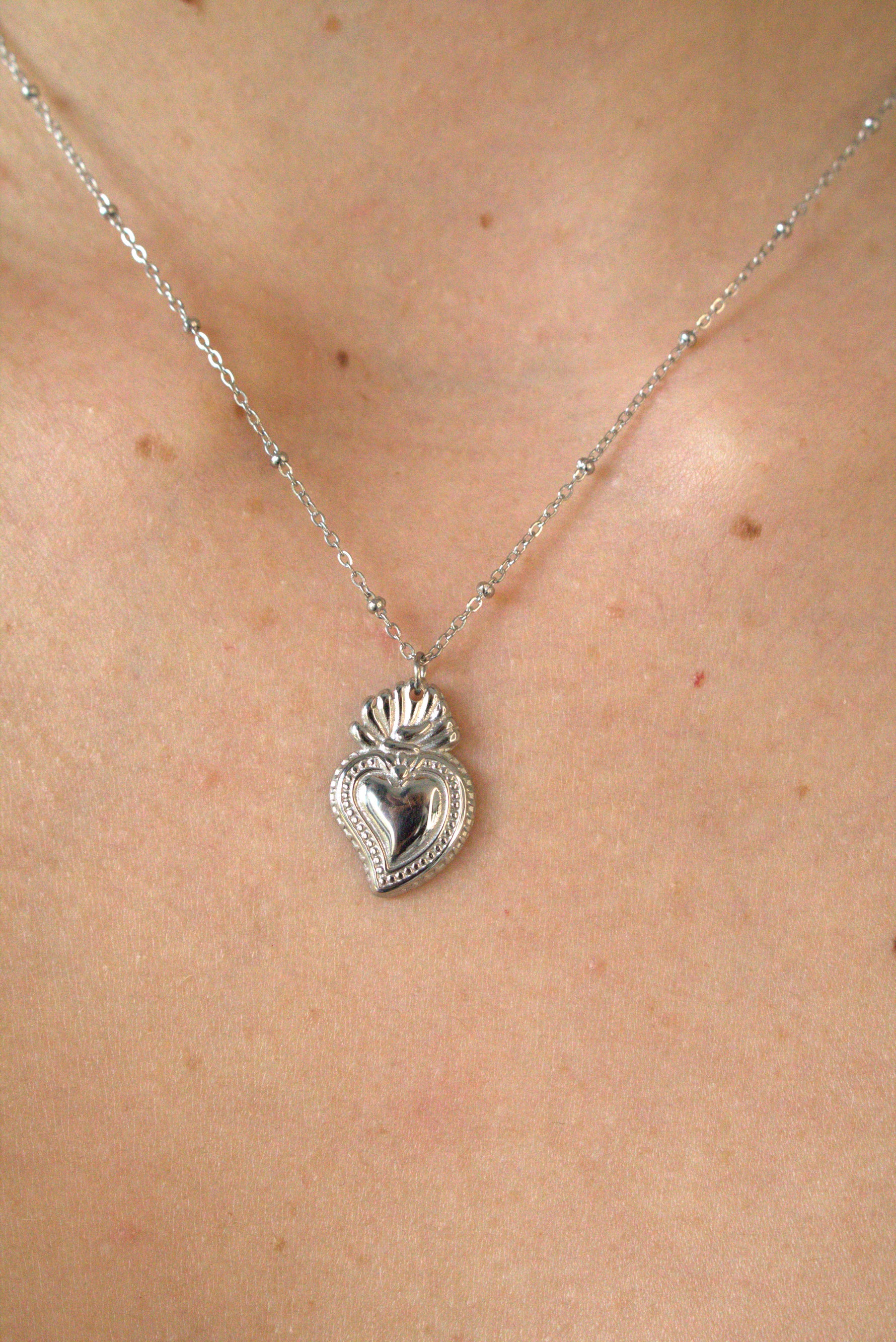 Collana con ciondolo pendente a forma di cuore con corona, disponibili in colorazione oro o argento