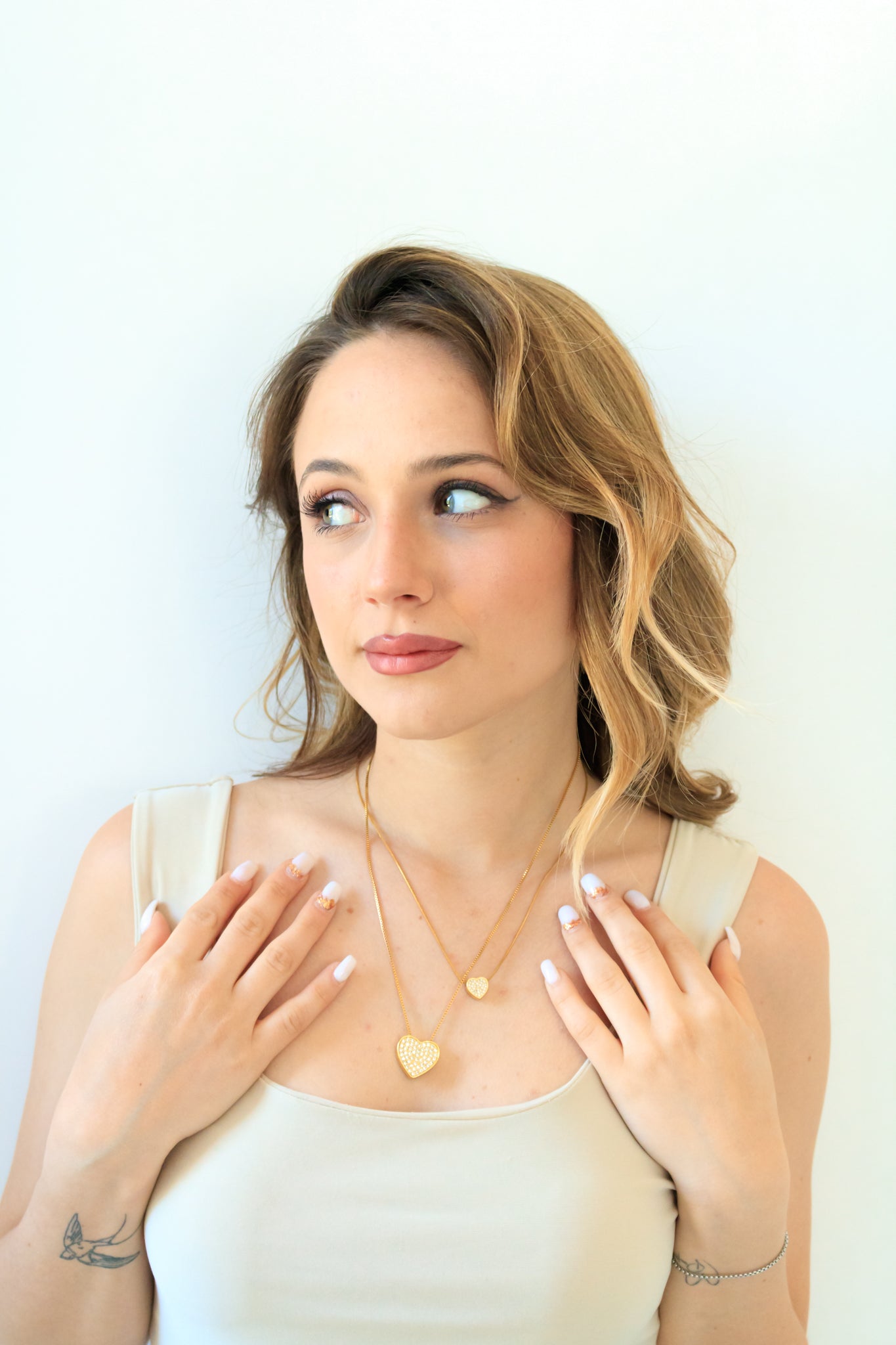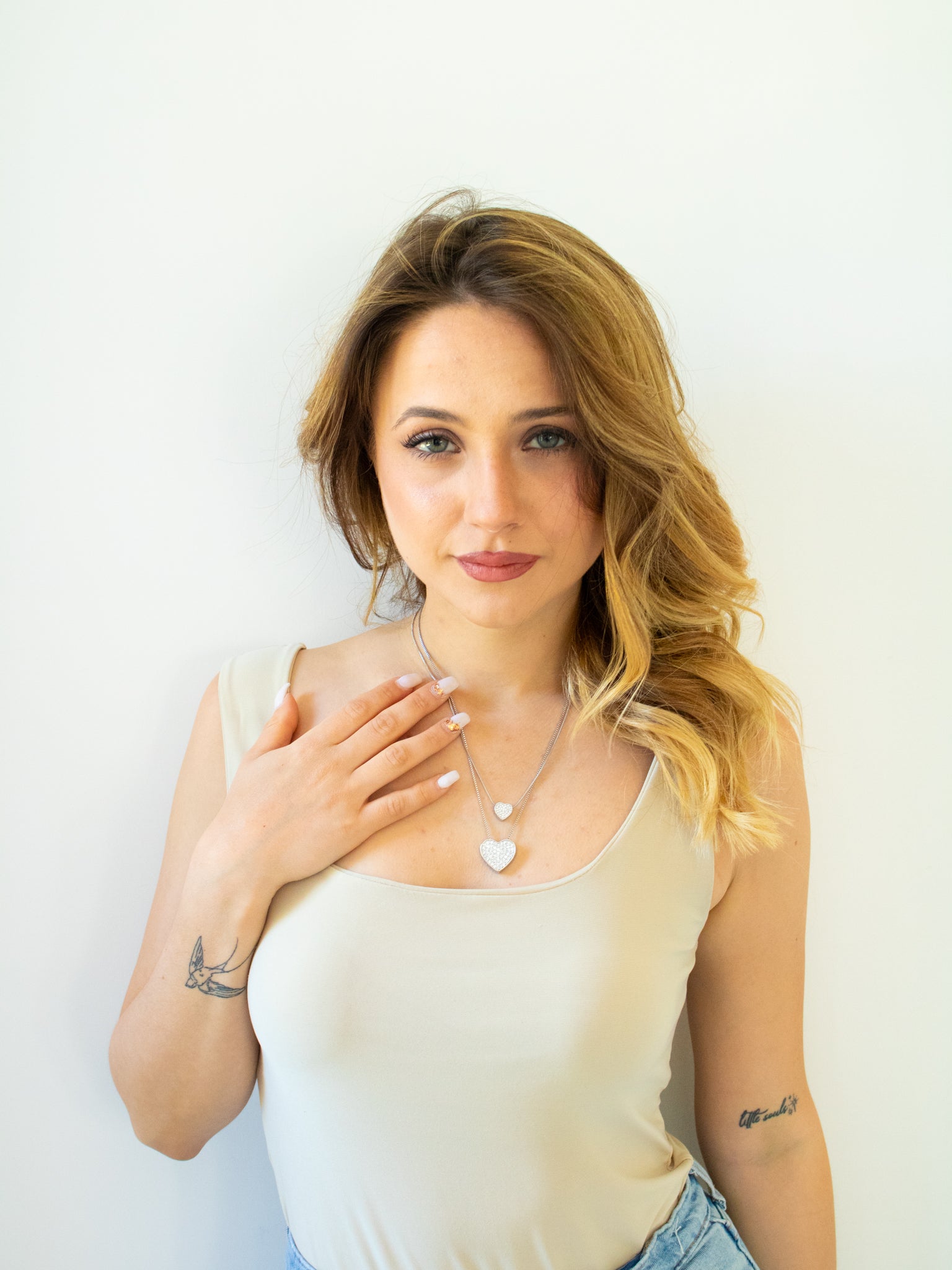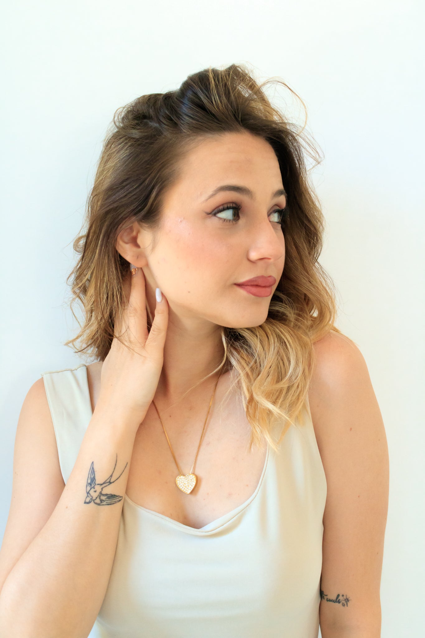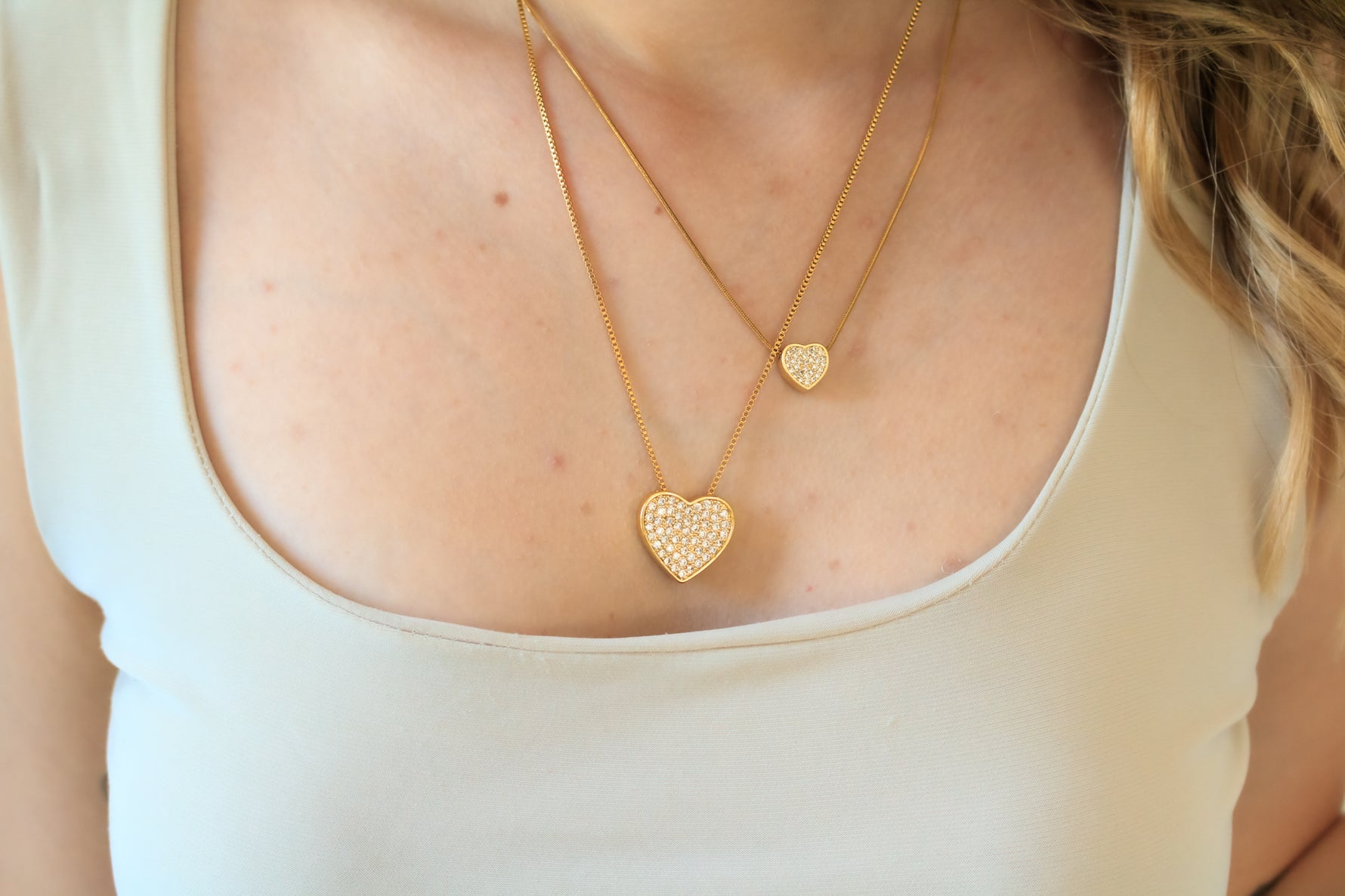 Collana con cuore strass, disponibile in due differenti misure e due differenti colorazioni: oro o argento