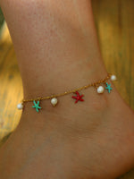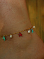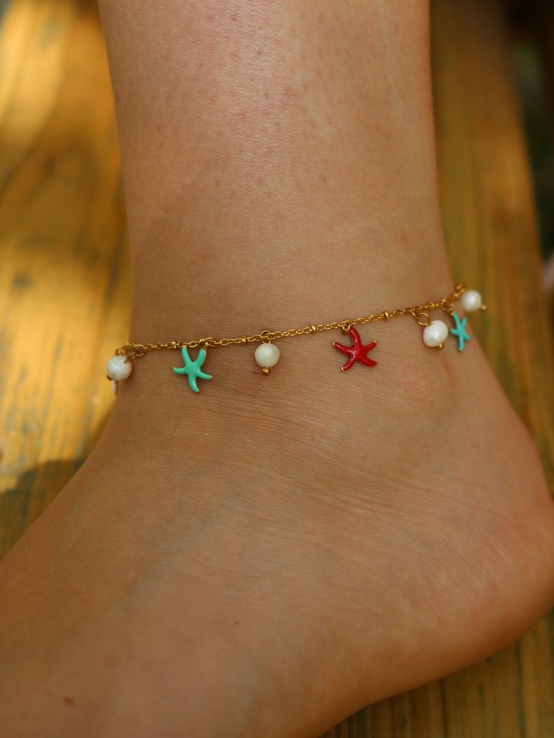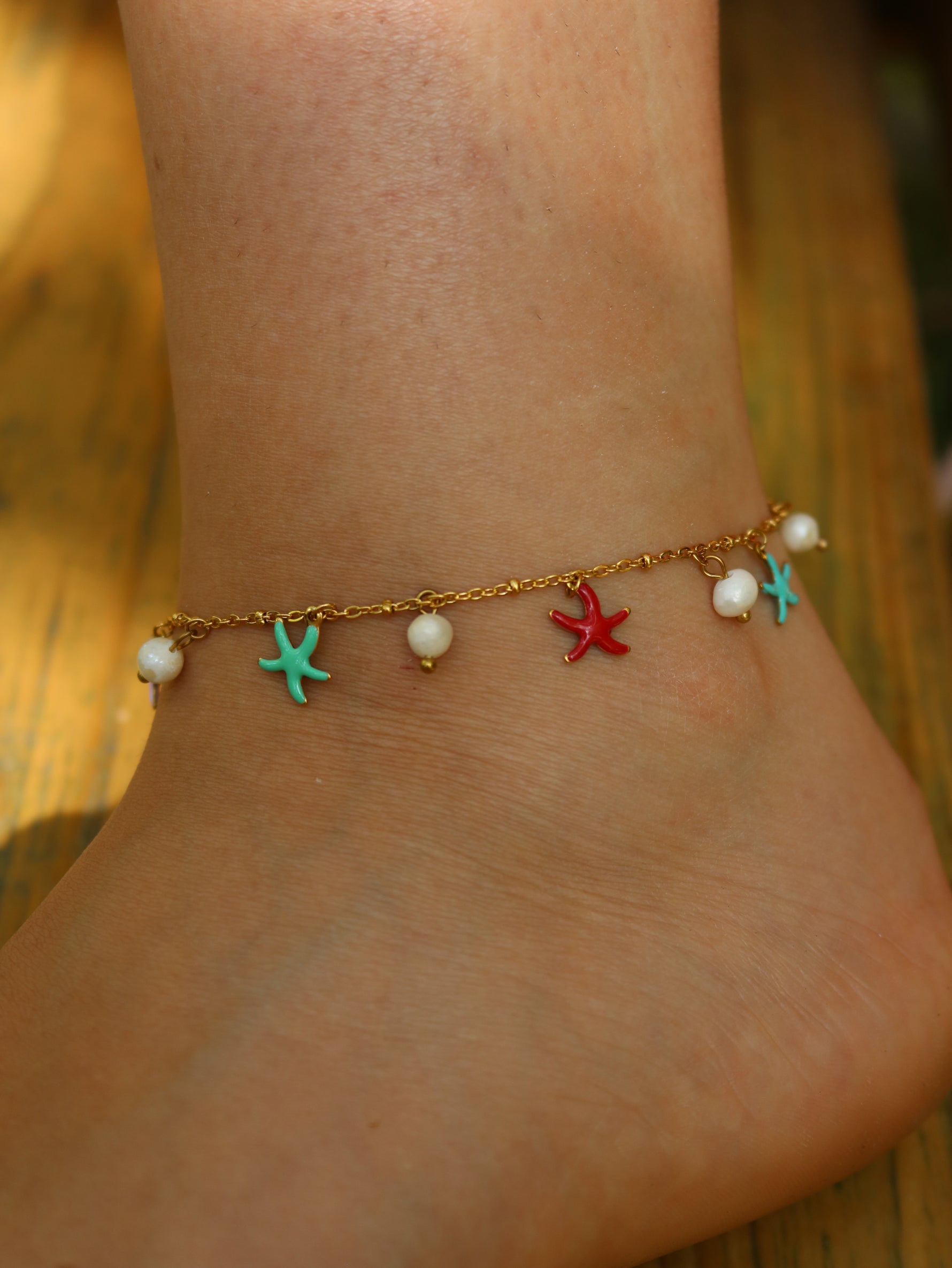 Cavigliera con ciondoli a forma di stella e perle.
