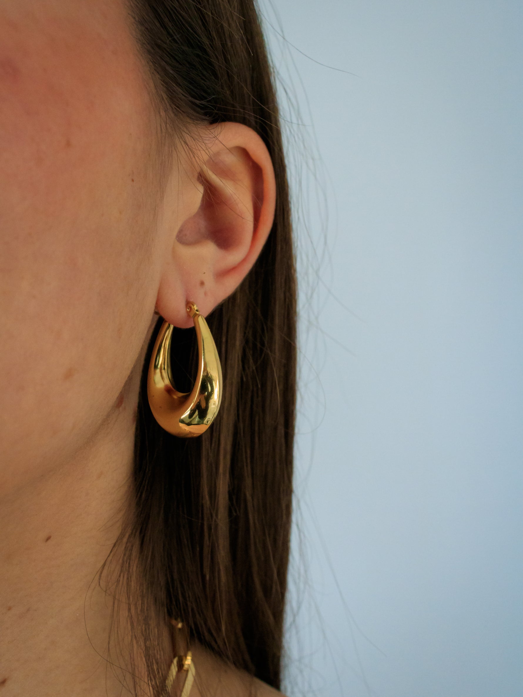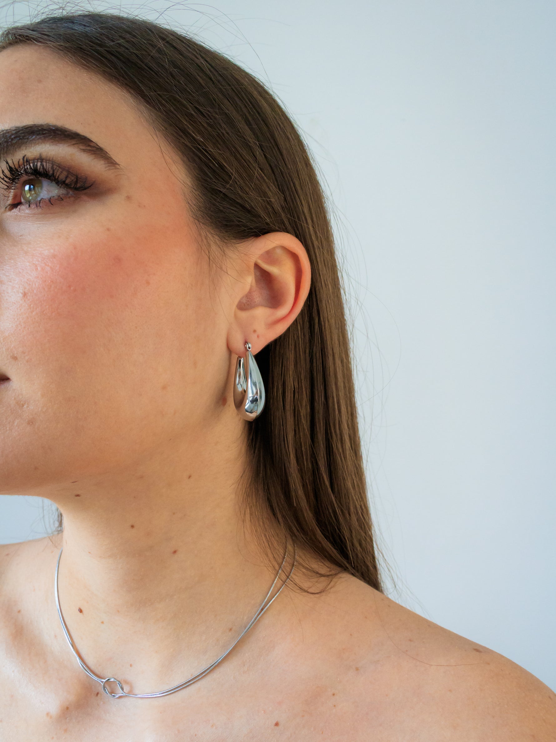 Orecchini cerchi a goccia, disponibile in colorazione oro o argento