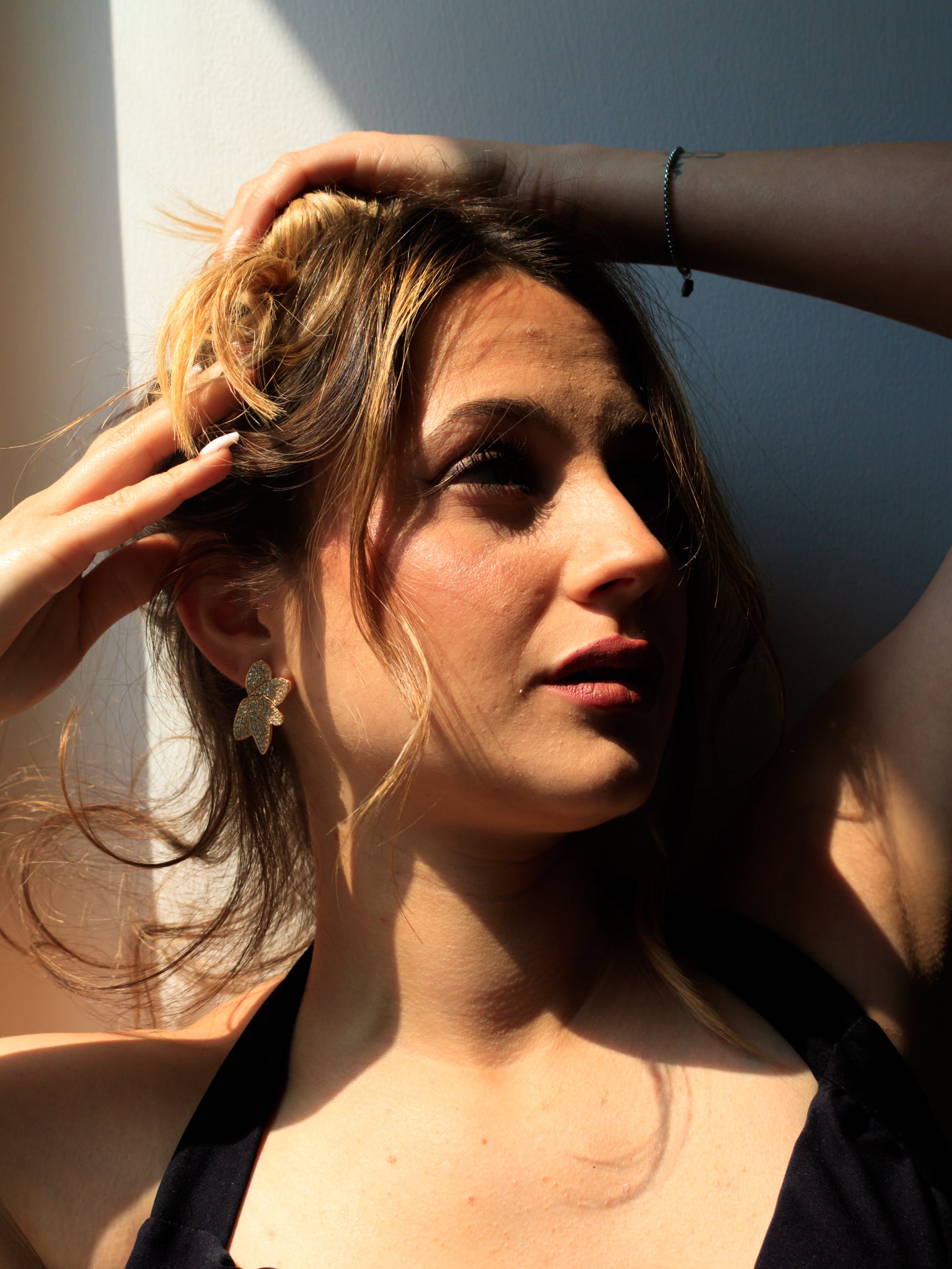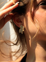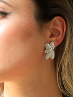Orecchini con foglia strass, disponibili in colorazione oro o argento.